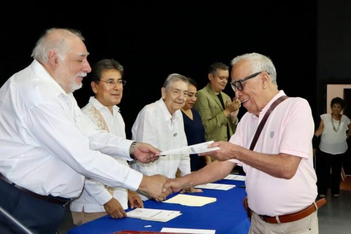 En la sala Juárez de la Facultad de Bellas Artes se dieron cita integrantes de la comunidad fundadora de esta carrera, y en algunos casos, sus familiares, quienes recibieron diplomas y preseas de manos del Secretario Académica de la UABJO, Mtro Carlos García Luna, en representación del Rector de nuestra Universidad, Mtro. Cristian Eder Carreño López; el Presidente de la Generación 60, C.P. Miguel Ángel Moreno Tello; la Encargada de Despacho del H. Ayuntamiento de Oaxaca de Juárez, Lic. Judith Carreño Hernández, el Ex rector de la UABJO, Mtro. Rafael Torres Valdés, y catedrático de la Facultad de Arquitectura 5 de Mayo; y el Director de la Facultad de Bellas Artes UABJO, Dr. Mario Vázquez Morillas.